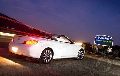 We've chosen the 2009 Infiniti G37 S Convertible for this day of Malibu-ing for two reasons: 1) This is a full test of the 2009 Infiniti G37 S Convertible, so bringing it along seemed to make sense; and 2) With its retractable hardtop, this is the perfect car for a run in and out of the 'Bu — a real coupe for the city and curvy stretches and a convertible for the coastal runs.