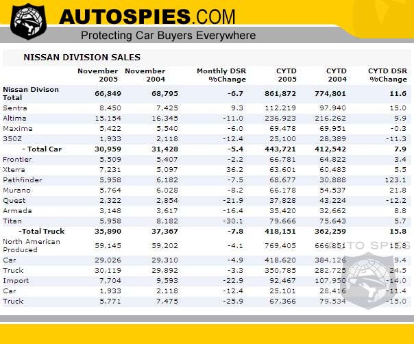 · November sales for Nissan-brand vehicles of 66,849 units were down 6.7 percent when compared to last year with 68,795 units sold
