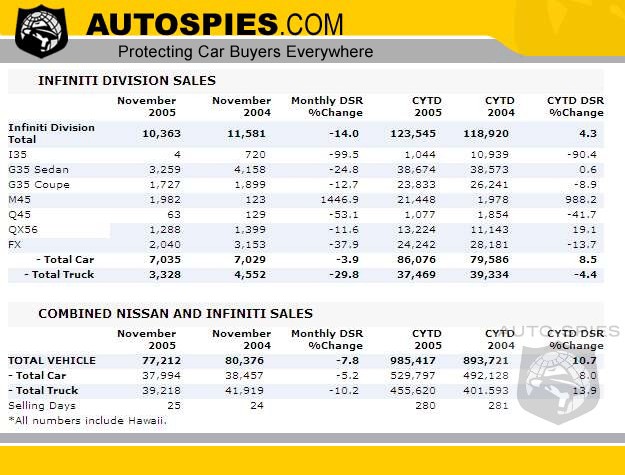 · Sales for Infiniti were down 14.1 percent from last November with 10,363 units sold