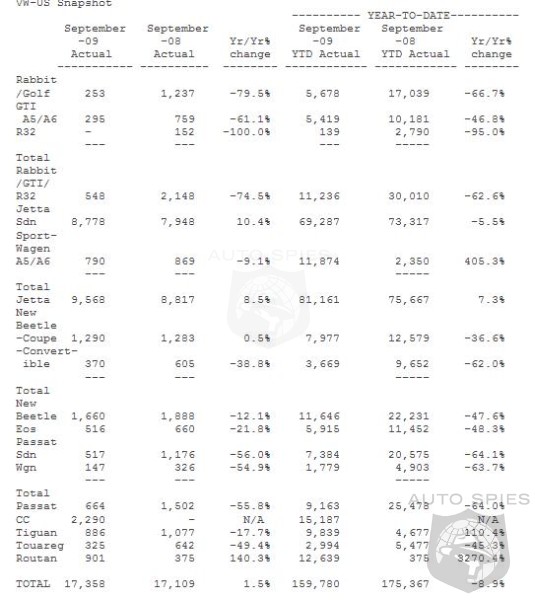 "Following such a strong month in August of this year, we are very pleased with consumer response to a number of Volkswagen's key nameplates during the month of September," said Mark Barnes, Chief Operating Officer, Volkswagen of America, Inc. "With the CC and Jetta all experiencing either month-over-month or year-over-year gains, we believe the brand is well-positioned for continued growth as we head into the Fall months. We are also excited to have the 2010 all-new Golf TDI reaching dealer showrooms nationwide, and offer a no-compromise solution to drivers who want fuel-efficiency without sacrificing performance."