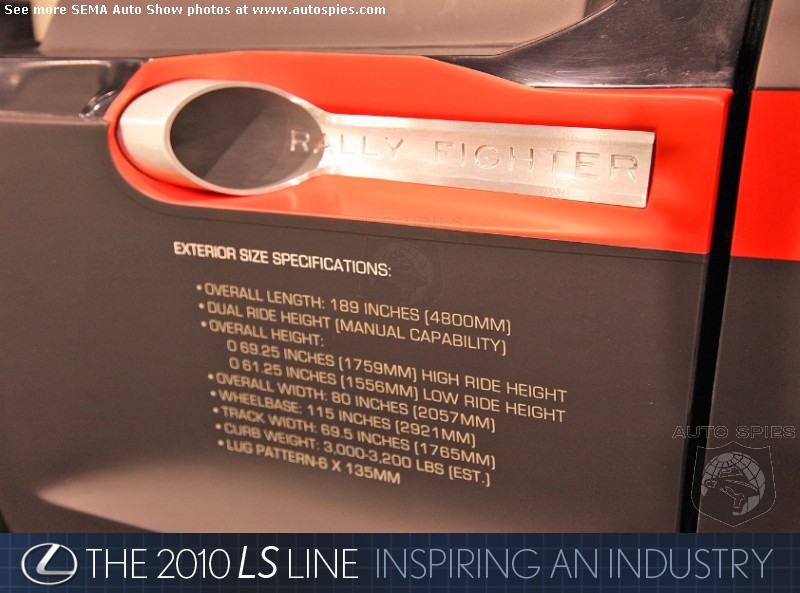 Although this is hard to say with all of the wacky stuff at the SEMA show, the Rally Fighter has to be the craziest car at the show. Equipped with a BMW 335d engine, power is substantial. Putting out 265-horsepower and 425 lb-ft of torque and weighing in at an estimated 3,200 pounds, performance is likely to impress.