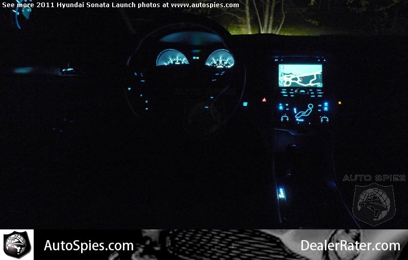 In my mind a car interior can be great but lose all its kudos if it doesn't impress in the night mode.Well, we cannot talk about driving impressions until Monday, BUT we want to know: Is its interior up to the night mode test? Let us know your opinion after you look at these exclusive shots of the interior light show.If you want to get an idea of the all-new Hyundai, click here where the latest gallery awaits.2011 Hyundai Sonata Launch Photo Gallery 2011 Hyundai Sonata Launch Photo Gallery2010 Rolls-Royce Ghost Launch Photo Gallery2010 Chicago Auto Show Photo GalleryAutoSpies.com Photo GalleriesIf you want to see your photos running on our homepage photo ticker, be sure to upload your photos on the go by sending them to Mobile@AutoSpies.com Share on Facebook