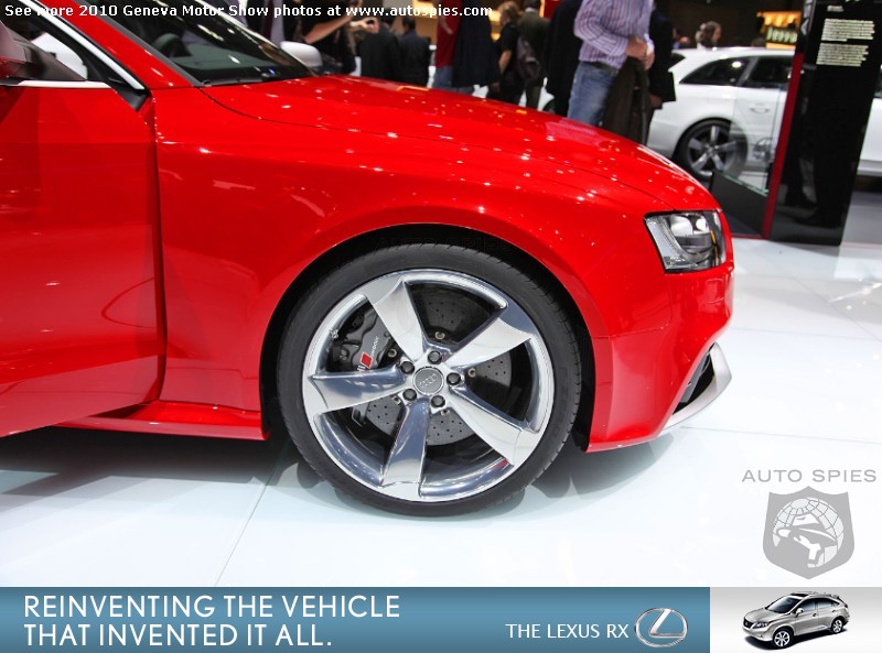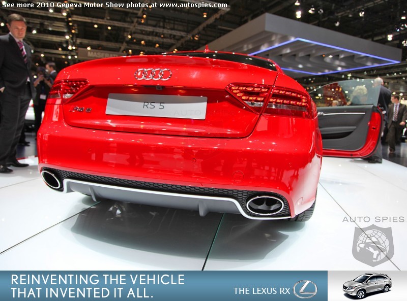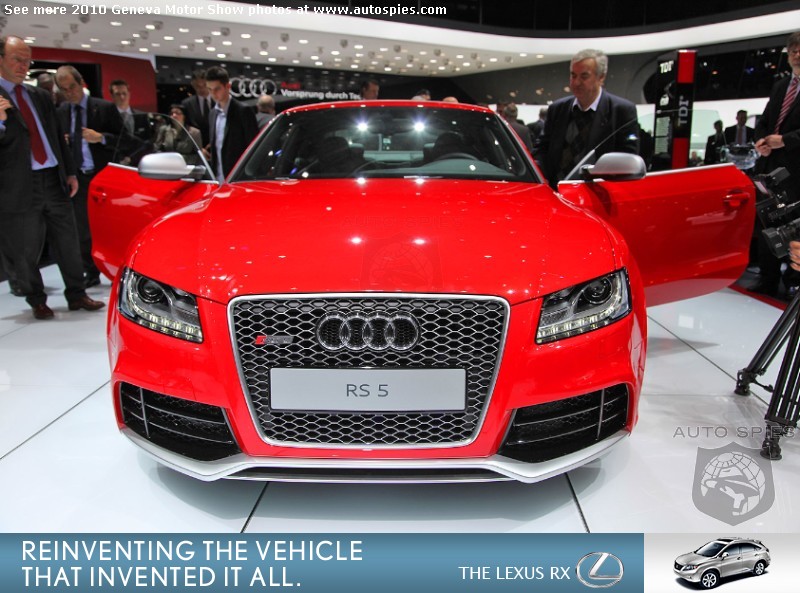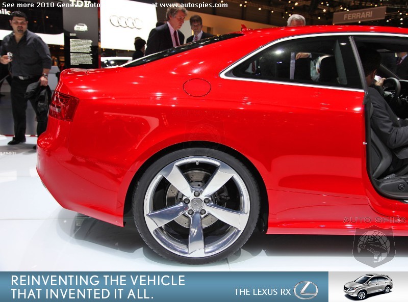Oh-kay, so you have read the press releases and have been overloaded with the same information on the all-new Audi RS5. But, let's get down to brass tacks. How does this sucker look in the flesh?Well, as 001 found out in Geneva, it is a brilliant piece of machinery. 001 cannot get enough of the front lip on this car.Other exterior stand-outs are the 19 inch wheels with a big brake kit glowing underneath and oval "RS" exhaust tips. On the interior the show car is outfitted with carbon fiber and the infamous "Vader" seats that we do not seem to get in the U.S. Hopefully, that will change soon!What are your thoughts on the all-new RS5?Let us know in the comments below... Geneva Motor Show Photo Gallery Geneva Motor Show Photo Gallery2011 Hyundai Sonata Launch Photo Gallery2010 Rolls-Royce Ghost Launch Photo Gallery2010 Chicago Auto Show Photo GalleryAutoSpies.com Photo GalleriesIf you want to see your photos running on our homepage photo ticker, be sure to upload your photos on the go by sending them to Mobile@AutoSpies.com Share on FacebookThis year's gallery is sponsored by Lexus