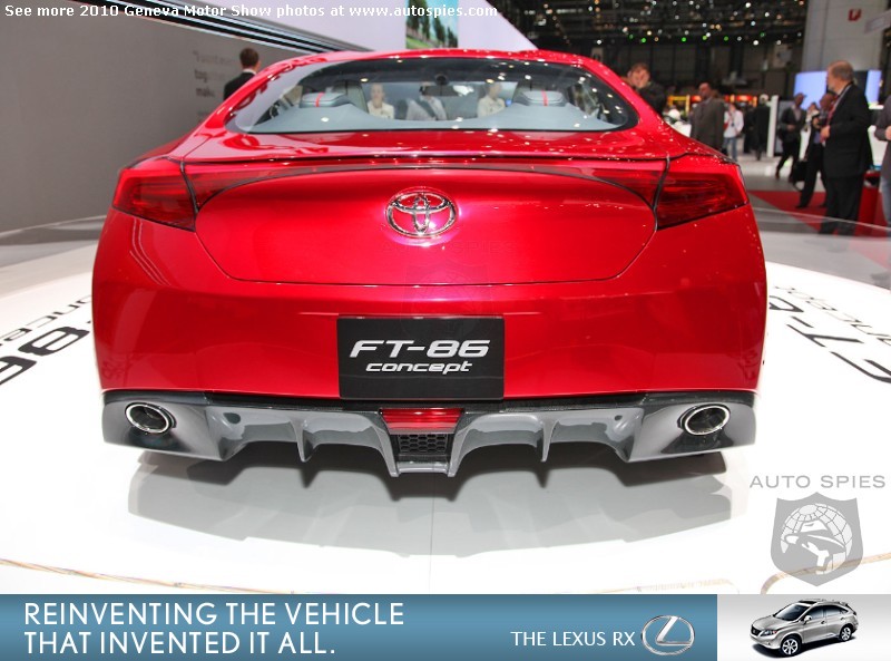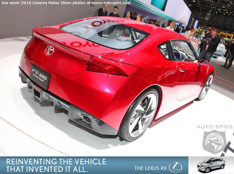 Could this be the car that brings back Toyota's sporting side? Has there really been anything since the Supra that has stirred your soul?I mean there was the MR2 Spyder, but I would not say that car really stirred that many people. By the looks of things, it seems like the FT-86 could be the car to steal the crown for one of the best sports cars under $35,000. Nissan's 370Z and Hyundai's Genesis Coupe have been put on alert...What say you, Spies?Is this what you've been waiting for? Geneva Motor Show Photo Gallery Geneva Motor Show Photo Gallery2011 Hyundai Sonata Launch Photo Gallery2010 Rolls-Royce Ghost Launch Photo Gallery2010 Chicago Auto Show Photo GalleryAutoSpies.com Photo GalleriesIf you want to see your photos running on our homepage photo ticker, be sure to upload your photos on the go by sending them to Mobile@AutoSpies.com Share on FacebookThis year's gallery is sponsored by Lexus