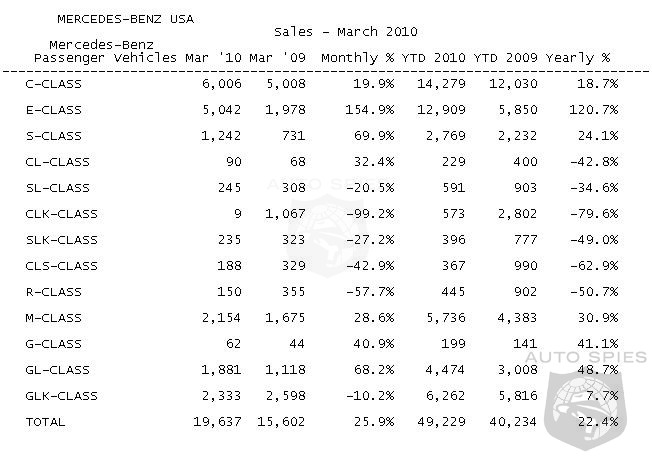 Separately, through the Mercedes-Benz Certified Pre-Owned (MBCPO) program, MBUSA sold 7,797 vehicles in March; a 17.9% increase compared to March 2009 sales of 6,614 vehicles. Year-to-date sales for the MBCPO program are 20,179 - a 5.3% increase over 2009 year-to-date sales (19,161 vehicles) during the same timeframe.