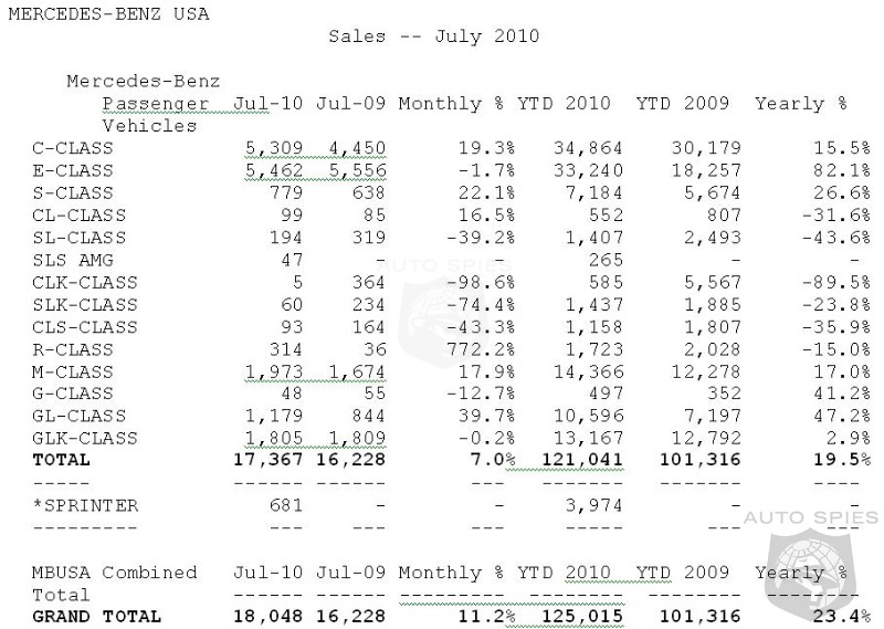 Separately, through the Mercedes-Benz Certified Pre-Owned (MBCPO) program, MBUSA sold 6,909 vehicles in July, up 12.4% compared to July 2009 sales of 6,145 vehicles. Year-to-date sales for the MBCPO program were 48,231 -- a 7 % increase over 2009 year-to-date sales (45, 095 vehicles) during the same timeframe.