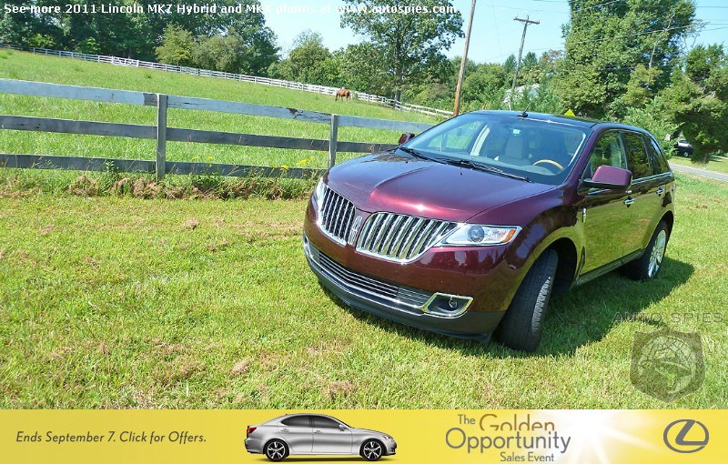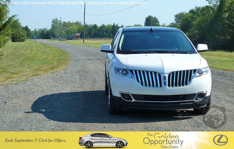 Live from Georgetown is Agent001. After having the chance to drive one of Lincoln's family, the MKZ Hybrid, he was given the chance to pilot another new sibling; the MKX.Although we still cannot provide any driving impressions because of a strict embargo, we are able to show you as many photographs of the car as we want.Taking a look at the 2011 Lincoln MKX, you have to admit that for a luxury crossover, it is likely going to put its crosshairs on the Lexus RX. Make sure to take a look at the new, updated interior and its interface. What do you say, Spies?Does the Lexus RX have something to worry about?2011 Lincoln MKZ Hybrid & MKX 2011 Lincoln MKZ Hybrid & MKX2011 Lexus IS Photo Gallery2011 Hyundai Equus Photo Gallery2011 Mercedes-Benz CLS Photo Gallery2011 Ford Edge Crossover Photo GalleryAutoSpies.com Photo GalleriesIf you want to see your photos running on our homepage photo ticker, be sure to upload your photos on the go by sending them to Mobile@AutoSpies.com Share on Facebook