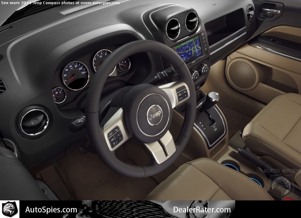 Interior upgrades for the 2011 Jeep Compass include new soft touch front-door trim panels with a padded upper surface; a new center armrest; a new Jeep steering wheel with integrated controls that allow the driver to operate the radio, cruise control, available handsfree phone and other vehicle functions while keeping their hands on the wheel; new cloth interior with premium cloth bucket seats in the front; standard speed control on all models; new backlighting of door switches, door locks, windows and power mirror controls.