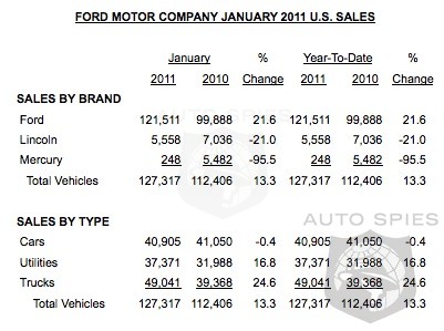 “We begin 2011 in a strong position – ready to meet the needs of a wide range of customers with a full portfolio of high-quality, fuel-efficient vehicles,” said Ken Czubay, Ford vice president, U.S. Marketing, Sales and Service. “We’re off to a great start in 2011 with the largest January retail sales increase in more than a decade.”