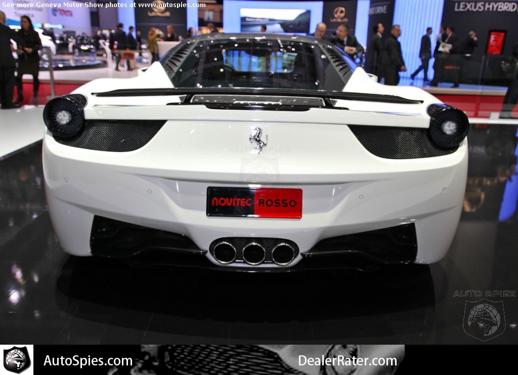 Although it may seem hard to believe for some of you, yes, there is a premier Ferrari tuner. With some in the automotive press saying that Ferraris are nearly perfect, you wouldn't think that there is room for improvement.Novitec Rosso thought otherwise and now it has finally brought forth its tuning program for the 458 Italia at the 2011 Geneva Motor Show. Boosting power to 609 horsepower, Novitec Rosso has optimized the already stellar 458's performance through a mix of mechanical and cosmetic parts. From extensive use of functional carbon fiber to a high-performance exhaust made of the same material found in Formula One cars, you can't say this is a botched job.**For the FULL modification details, click "Read Article"Novitec Rosso has finally released their program for the Ferrari 458 Italia. At the Geneva Motor Show 2011 the extensive program for the mid-engine sports car will celebrate its world debut.The high-performance program includes engine tuning that increases power output to 609hp at 9,100rpm. Simultaneously peak torque grows from 540Nm to 569Nm at 5,400rpm, propelling the two-seater car to a top speed in excess of 330km/h. Powered by this engine the two-seater engine tuning reaches a top speed in excess of 330km/h... [Source: GTspirit]Stay tuned to AutoSpies for the BEST Geneva Motor Show coverage!AutoSpies is number one in auto show news and photos on Google2011 Geneva Motor Show Photo Gallery2011 Geneva Motor Show Photo GalleryLamborghini Showcase Photo GalleryAudi Lightweight Tech Showcase Photo Gallery2011 Geneva Motor Show Preview Photo Gallery2012 Mercedes-Benz C-Class Coupe Photo GalleryAutoSpies.com Photo GalleriesIf you want to see your photos running on our homepage photo ticker, be sure to upload your photos on the go by sending them to Mobile@AutoSpies.com Share on FacebookRead Article