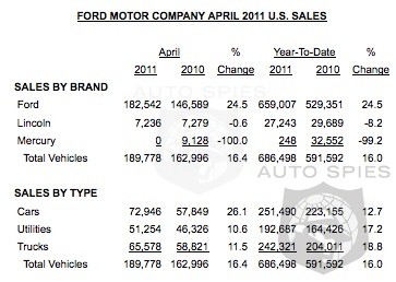 In April, total sales were 189,778, up 16 percent. Retail sales were up 10 percent and fleet sales were up 31 percent (commercial was up 33 percent, government grew 10 percent, and daily rental increased 39 percent).