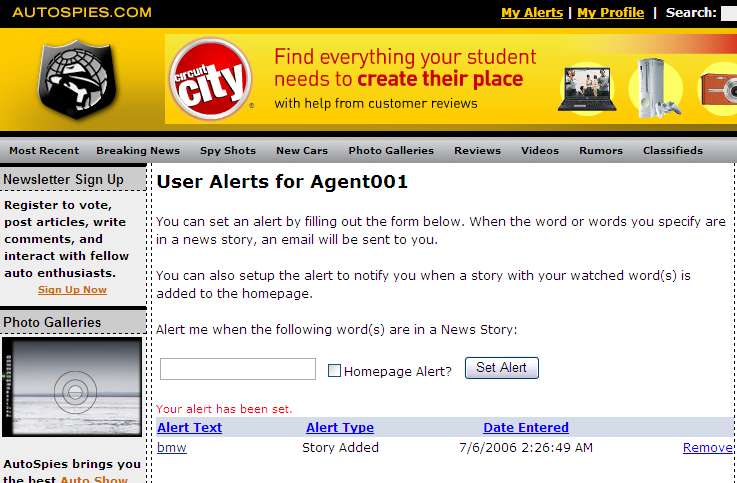One of my favorite new AutoSpies.com features is the 'my alerts' section.