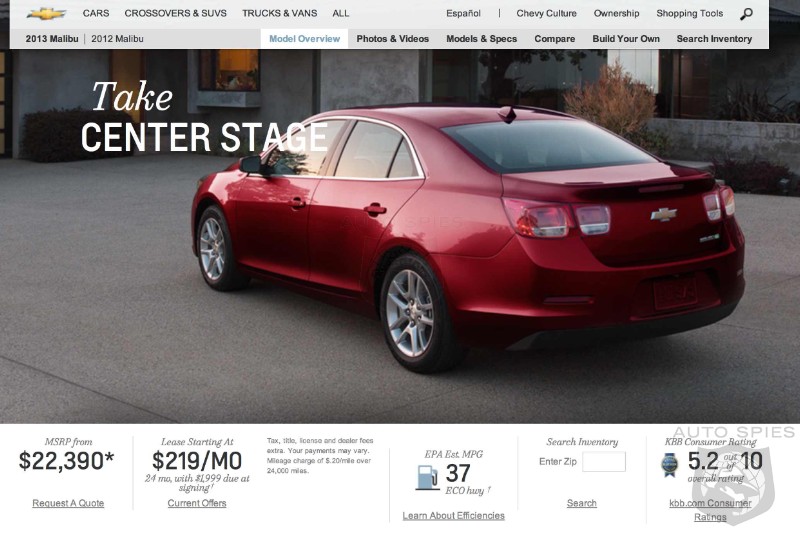 However if you wander over to Chevrolet and look at the 2013 Malibu you see a great finance price, and an impressive 37 mpg highway rating.