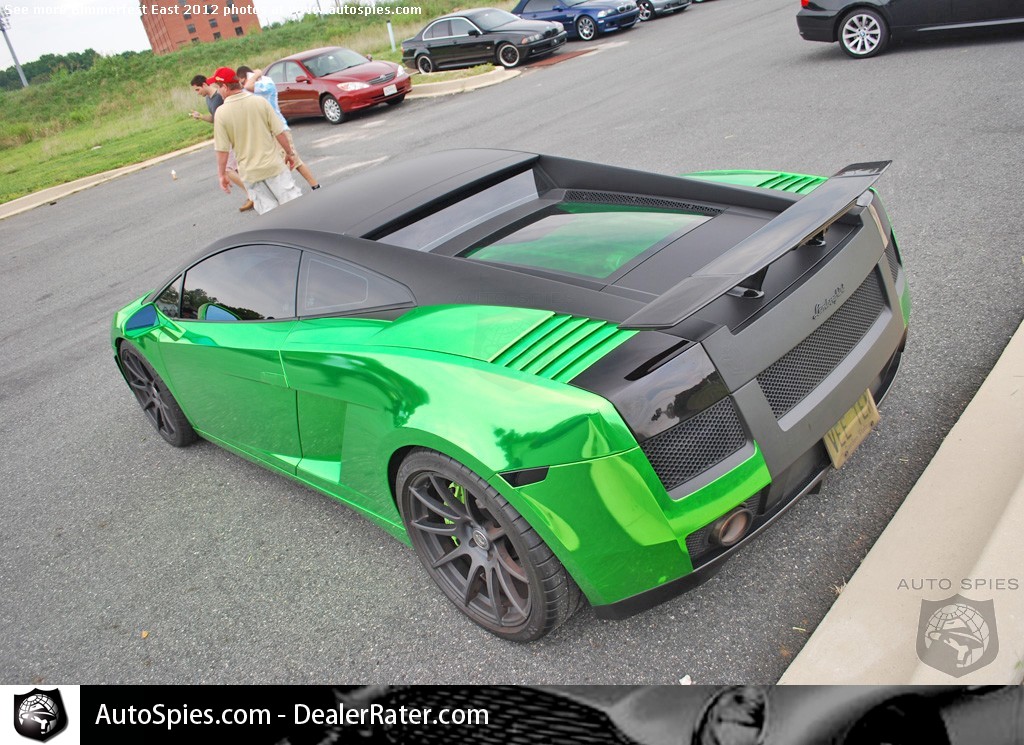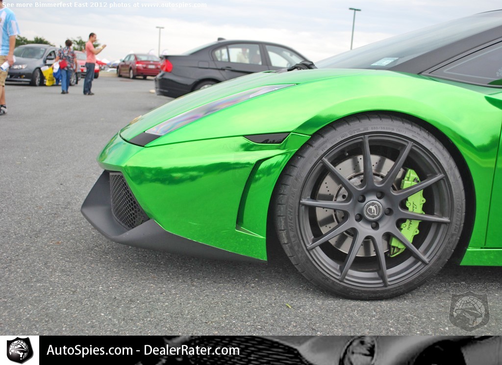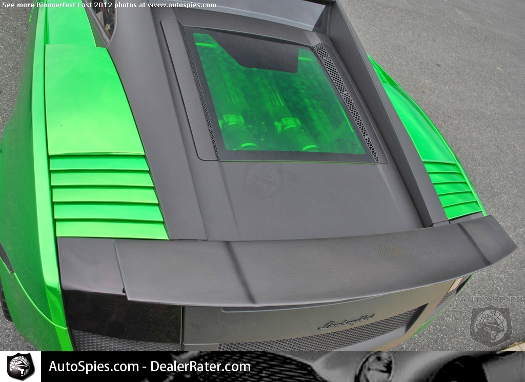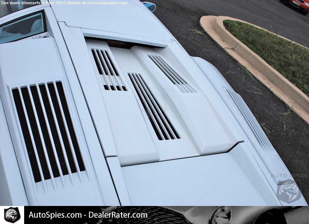 Unless you load-in with the vendors from 6:30 to 8:00 a.m. at Bimmerfest East 2012, you're likely to have to do a bit of waiting to get into the event's parking area. As this venue is right off of I-95, there's not much to look at while you wait.However, there was one little parking area just to the left of the entrance's event and you pretty much would have to of been blind to miss these two jewels tucked away, seeming to avoid entering the event.Although folks were confusing the first-gen Lamborghini Gallardo for the refreshed Superleggera, this appeared to be a standard early model with some bolt-on modifications. Unless you're color blind, it's pretty evident it has a lime green/chrome wrap and some other interesting mods, like the green tinted, glass engine cover.Merely feet away from this Gallardo was the legendary Countach in a stunning white on white combination.What was particularly stunning about this example is that although it definitely has some years under its belt, it was in tremendous shape.Stay tuned for more Bimmerfest East 2012 coverage!Bimmerfest East 2012 Photo Gallery