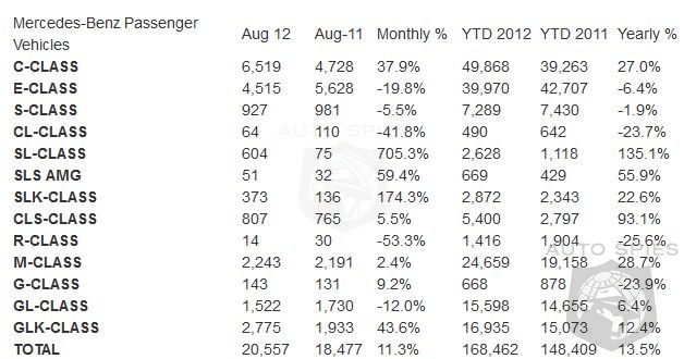 Monthly sales of the high-performance AMG models were 637, up 55.7% versus August 2011 (409) and up 52.1% year to date.