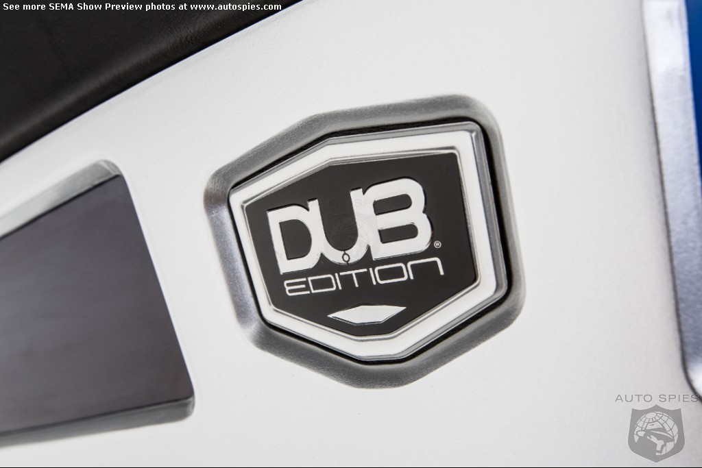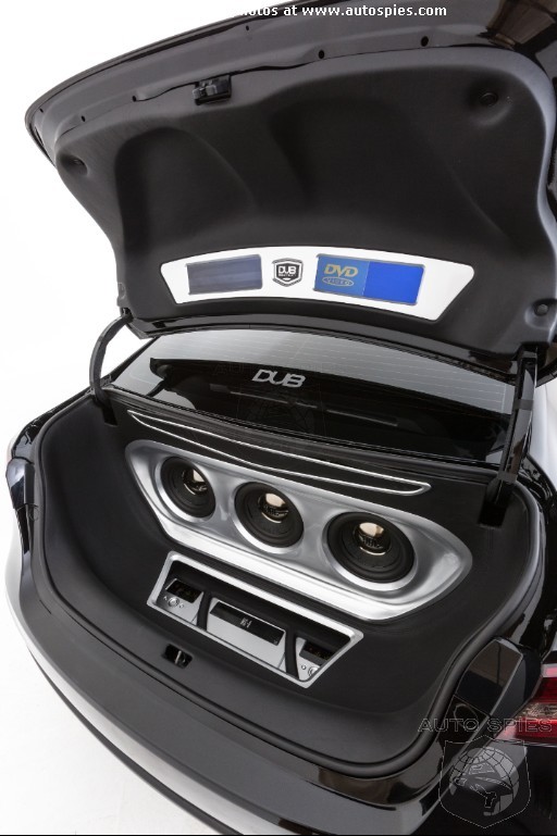 The interior gets plenty of attention, too, with liberally applied suede accents on the console, door panels and headliner. The seats receive plush diamond-pattern suede inserts, with DUB logos sewn into the seatbacks. And like the exterior, everything is black inside.