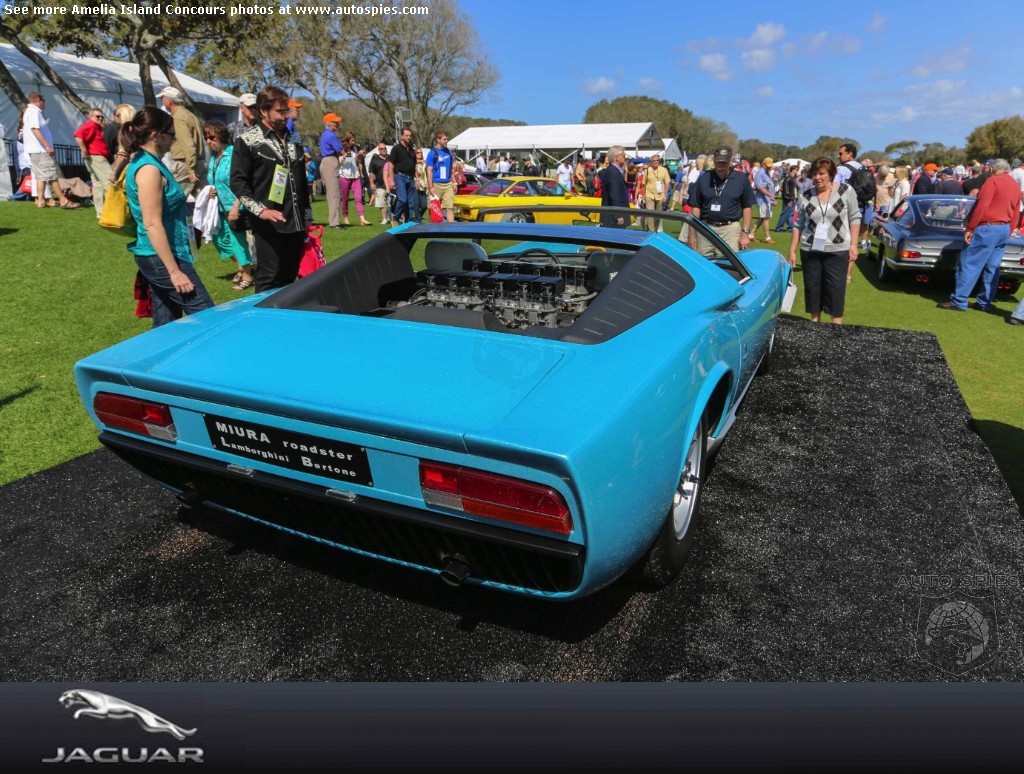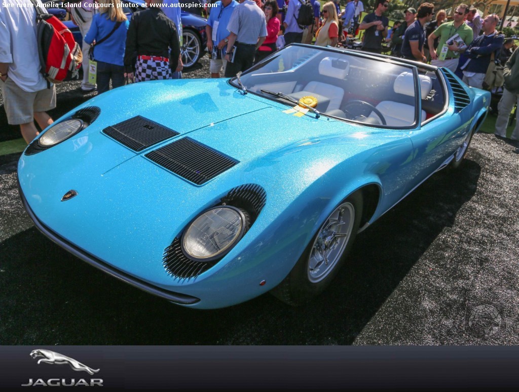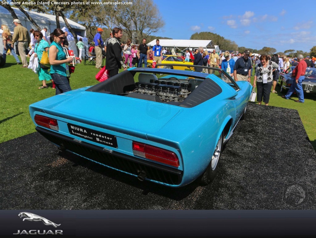Taking the top spot at the Amelia Island Concours is an honor that's only been reserved for the creme de la creme. What it comes down to is this: at one of the premiere vintage automotive events, the vehicle in question has to be good. Really good.And it appears that Lamborghini just went and found that car.Debuting at the 1968 Brussels Auto Show, Lamborghini brought one very unique set of wheels. It was a Lamborghini Miura Roadster. The key word here is "roadster." Sporting its metallic blue paint job and with Valentino Balboni and company surrounding it, I can't think of many things better than this.Oh, yes I can. Check out its exposed motor!AutoSpies.com is ranked #1 on Google for auto show photos!**The 2013 Amelia Island Concours photo gallery is sponsored by Jaguar2013 Amelia Island Concours Photo Gallery