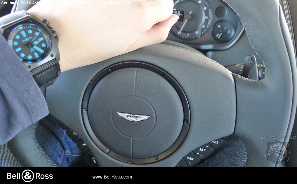 Getting behind the wheel you're confronted with a steering wheel that's lifted straight from the One-77. It's not a perfect circle nor does it feature a flat bottom as many high-end performance cars do today. Instead it can be best characterized as a square with a rounded off top and bottom. Personally, I love the circular ring that looks as though its PVD, just like my Bell & Ross BR-02. Behind the wheel you'll find the instrument cluster that reminds me, once again, of a high-end watch.