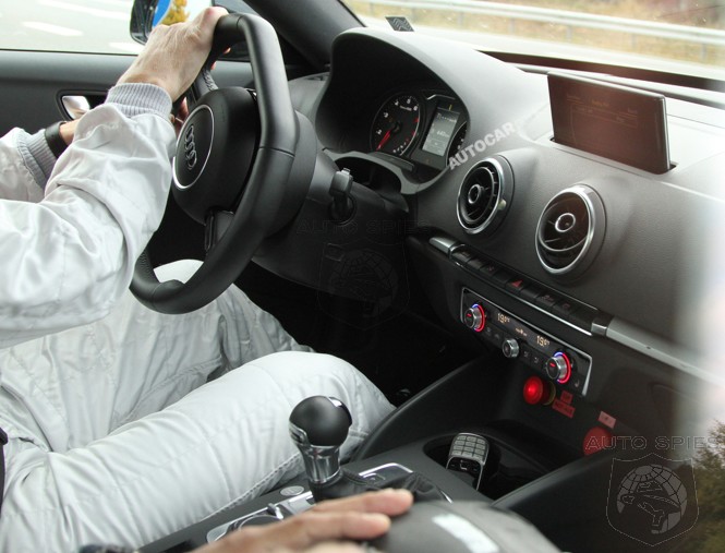 As you can see the cockpit is very Spartan but appears to feature high quality plastics we've come to expect from Audi. From what I am seeing the center stack is very reminiscent of the Audi A3's interior and it looks like there will be an MMI controller and touchpad located behind the shifter. Lastly, the navigation unit appears to slide up from the dash. This is different from the infotainment display that's concealed and slides out from the center stack at the touch of a button.