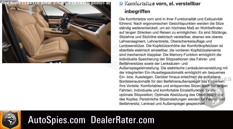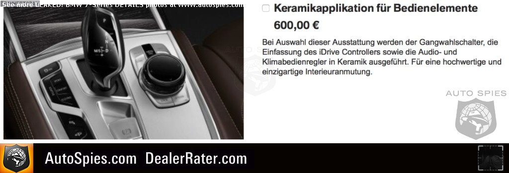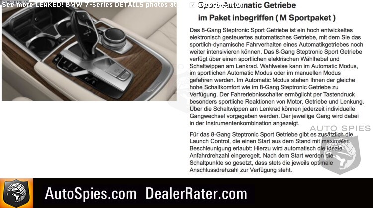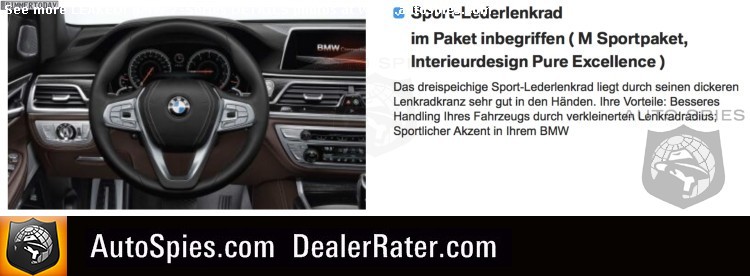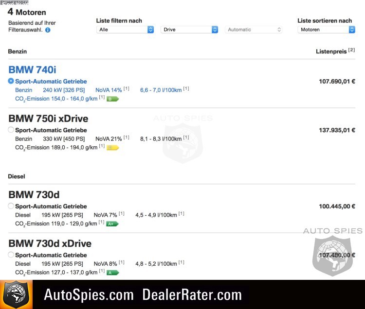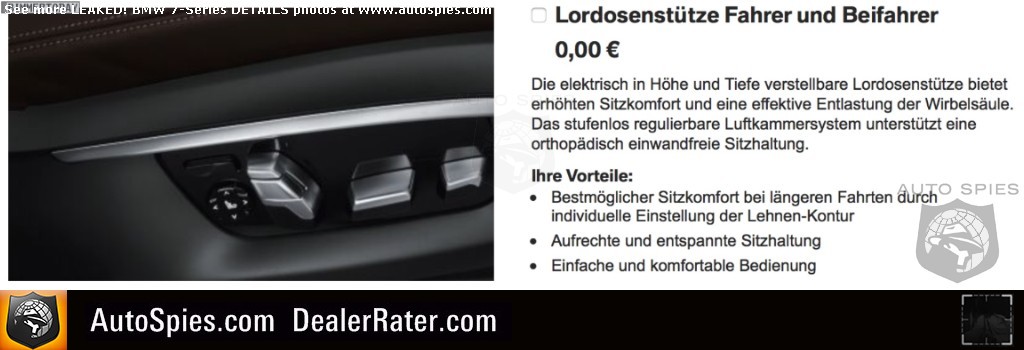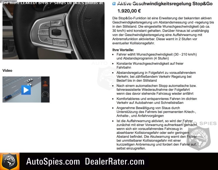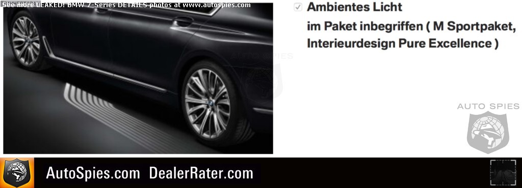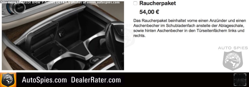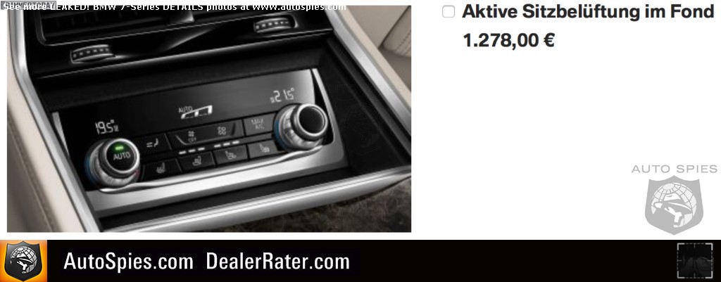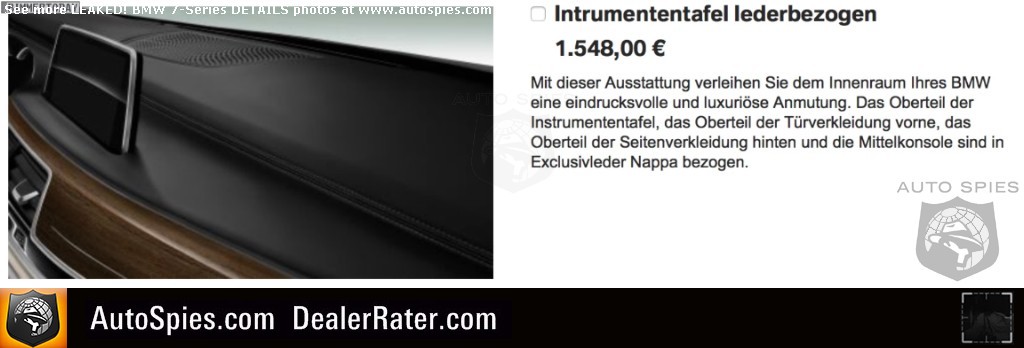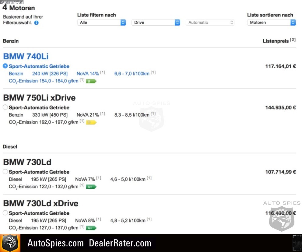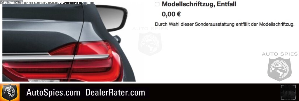 If you're a BMWphile, we've got fresh news that will certainly make your Sunday a bit brighter. That's because a MAJOR leak of BMW 7-Series information has made its way public due to a website abroad that seems to have had its configurator go live a bit too early. According to what we're reading, BMW.at is to blame. We've seen this happen countless times. We assume its due to web developer's setting up pages for product launches. LEAKED! BMW 7-Series DETAILSFor BMW this all-new 7-Series is a big deal. That's because it will be doing hand-to-hand combat with the likes of the new Mercedes-Benz S-Class that has been absolutely dominating the large luxury sedan class. In addition, we've been told that much of the all-new G11/G12 model's technology is the first time it will debut on BMW models. In other words, what you'll be seeing with the all-new 7 will trickle down into the next-gen BMW vehicles. Although I know the captions are not in English, it's pretty clear what these options and features below are for. What will be interesting to see is how the North American market prices the all-new 7-Series. Considering how strong the U.S. dollar is right now, these figures may not be too far off. Time will tell.Stay tuned to AutoSpies.com as we make our way to Munich for the all-new 7-Series' unveil happening THIS WEEK!LEAKED! BMW 7-Series DETAILS Read Article