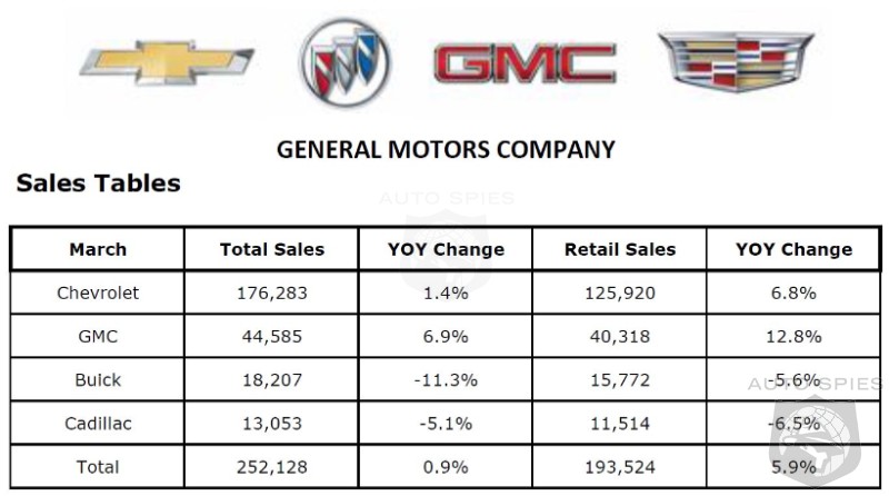 General Motors (NYSE: GM) delivered 193,524 vehicles in March to individual or “retail” customers, up 6 percent year over year, driven by a 7 percent increase at Chevrolet and a 13 percent increase at GMC. The strong performance of these two brands has helped GM grow retail deliveries every month since April 2015. Despite significant reductions in daily rental units, total sales were up one percent.GM’s first quarter sales results versus a year ago underscore the company’s momentum: