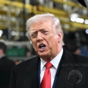 U.S. President Donald Trump raised his middle finger and appeared to direc...