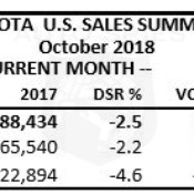 Toyota Motor North America (TMNA) today reported October 2018 sales of 191,102 ...