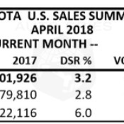 Toyota Motor North America (TMNA) today reported April 2018 sales of 192,348 ve...