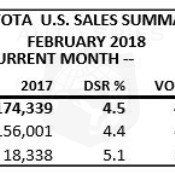 Toyota Motor North America (TMNA) today reported February 2018 sales of 182,195...