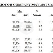 Ford Motor Company’s overall U.S. sales for May 2017 totaled 241,126 vehic...