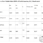 Sales of BMW brand vehicles decreased 12.5 percent in March for a total of 30,03...