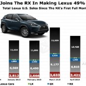The NX200t and NX300h combined to generate 4,014 U.S. sales in May 2015, the bes...