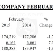 Ford Motor Company U.S. sales totaled 180,383 vehicles in February, down 2 perce...