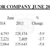 Ford Motor Company June 2014 U.S. sales of 222,064 vehicles declined 6 per...