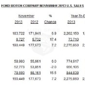Ford Motor Company's November U.S. sales of 190,449 vehicles are up 7 percent o...