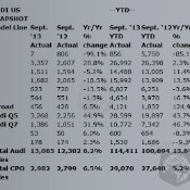 Audi reported September 2013 sales of 13,065 vehicles, a 6.2% increase over the...