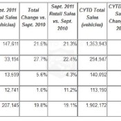 General Motors Co today reported total sales of 207,145 vehicles in September, ...