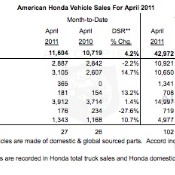American Honda Motor Co., Inc., posted April sales of 124,799, an increase of 5...