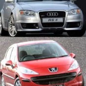 At the finish line, the pert Peugeot 207 was named "gayest" car, the buff Audi R...
