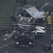 A fuel tanker truck veered into a highway median in Troy, Michigan, on Monday. ...