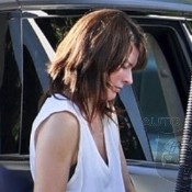 Actress Milla Jovovich filling up her Range Rover Autobiography (L405) in mid-Ju...