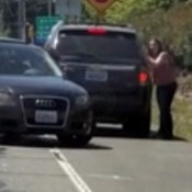 Yhis is the moment a furious driver apparently tries to mow down a man with his ...