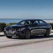 The 2018 Genesis G80 Sport has an aggressive look with its black chrome all over...