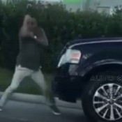 A Florida man was seen squaring up to a moving SUV before punching it and attemp...