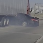 A vehicle was dragged on the tri-state tollway Tuesday by a semi-truck and it wa...