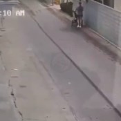 Horrifying video shows a woman pushing a baby in a stroller when they are mowed ...