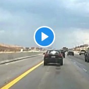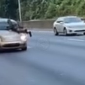 A man was filmed gripping onto the hood of a car for dear life as it sped along ...