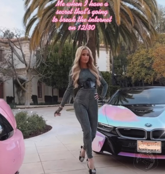 Paris Hilton hinted that she has a new, secret project in the works, and she only had one way to announce it: next to her custom cars, a Bentley Continental GT, and a BMW i8 Roadster.