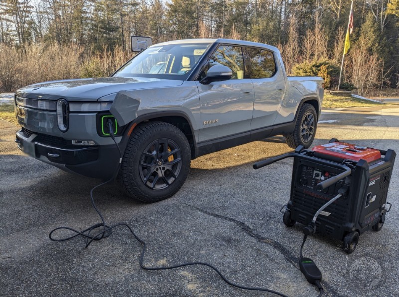 Rivian R1T Owner Carries Around A Gas Powered Generator To Keep His EV Charged