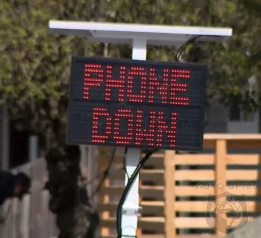Portable signs that show drivers a digital readout of their speed and tell them to slow down if they’re speeding are a common site on the road today. In some places, those signs will now tell distracted drivers to put their phones down, too.